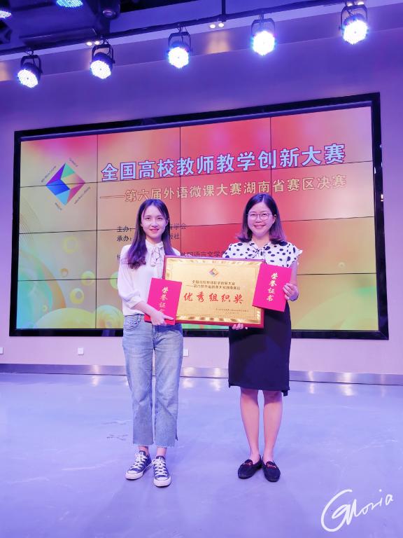 在8月7日结束的第六届中国外语微课大赛湖南省决赛中,物流人文艺术学院邹玉涵老师团队以一等奖的好成绩,入围国赛。刘洁老师团队获省赛三等奖。物流人文艺术学院获优秀组织奖。