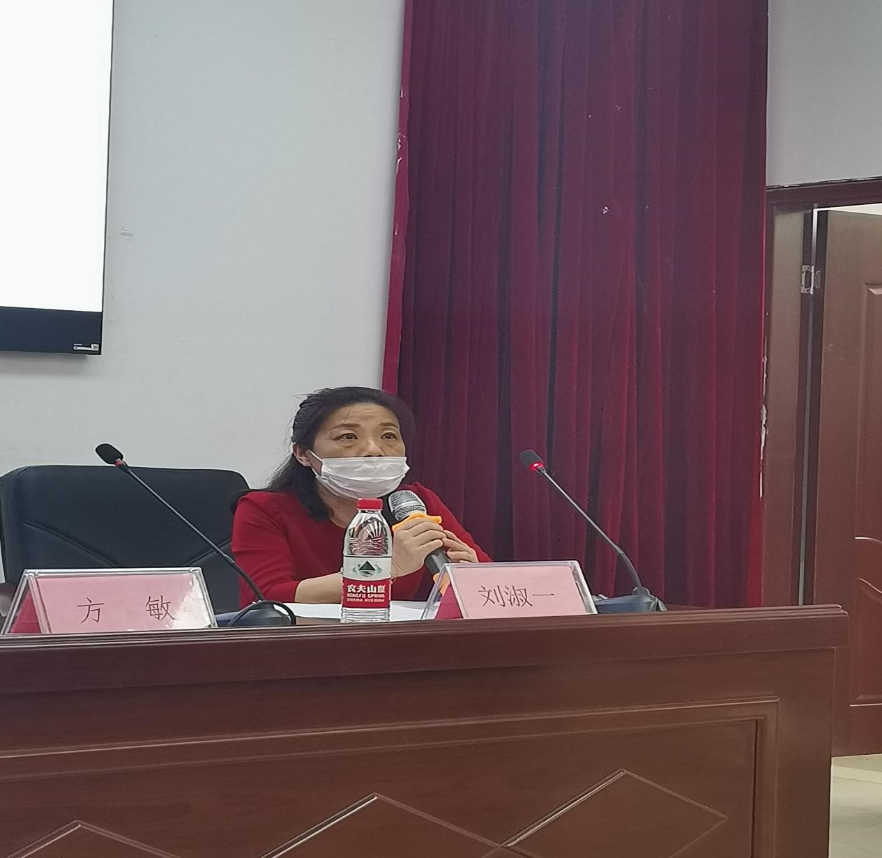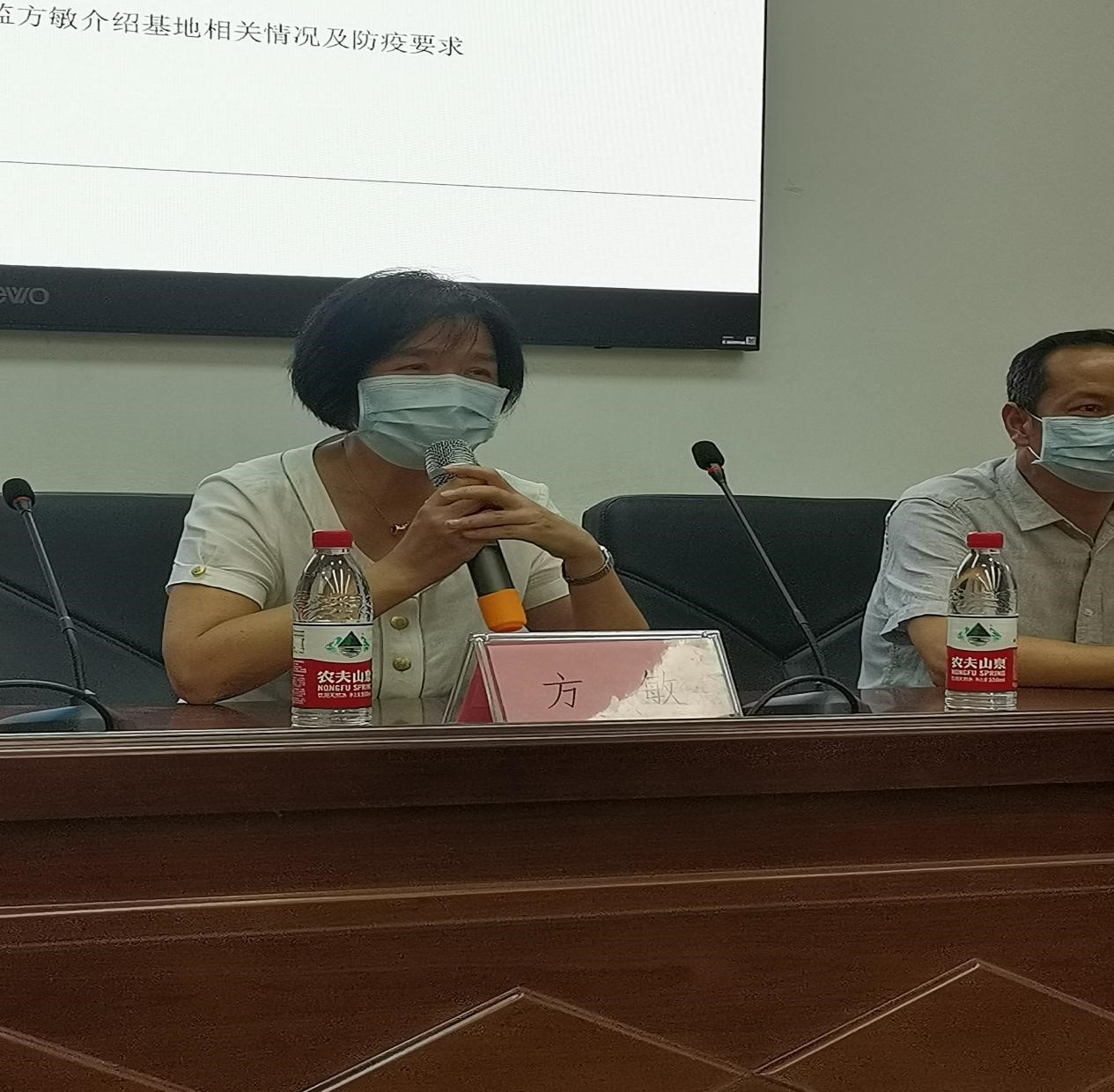 圣爵菲斯大酒店人力资源部总监方敏介绍基地的情况及防疫要求。