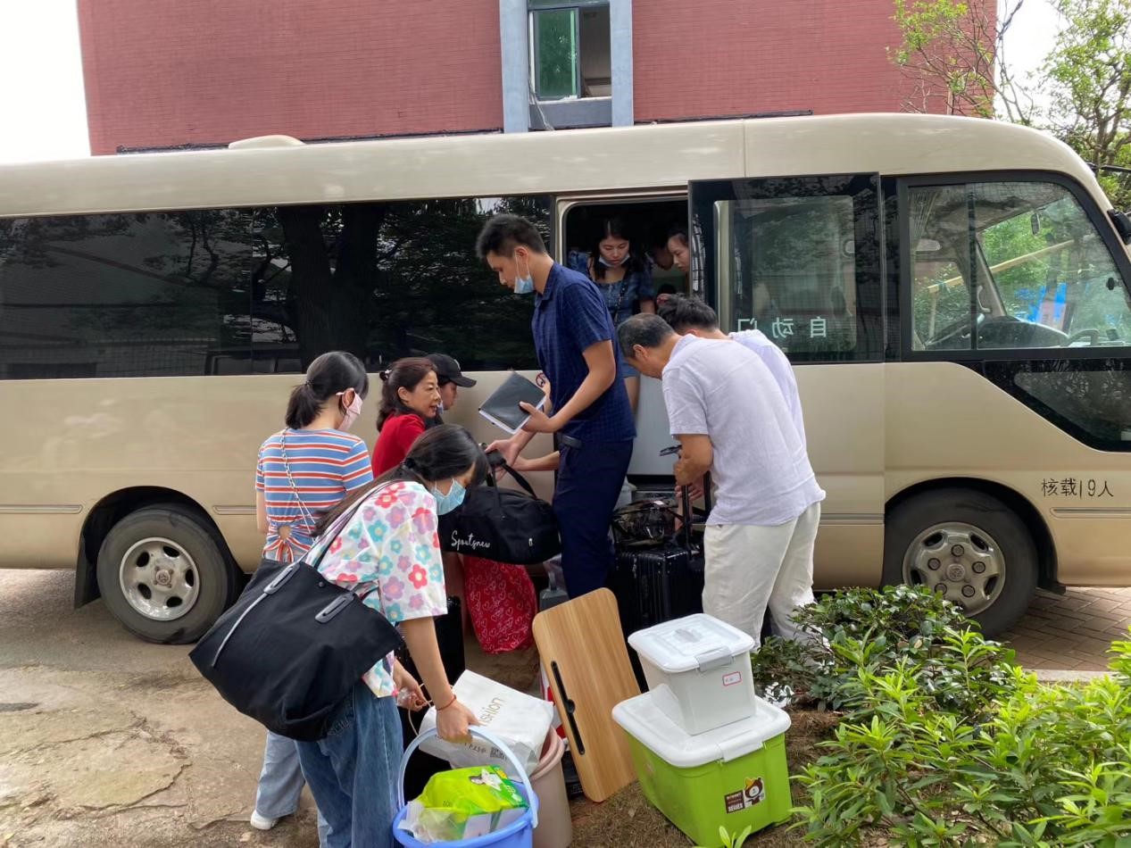 会后,酒店班班级男生更是发挥团结互助的作风,主动为女生提供搬运行李服务。刘淑一、李烁等老师亲自上阵,为学生搬抬行李,送行场面异常温暖感人。