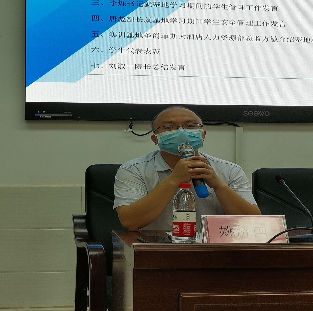 李烁介绍实训基地基本情况,特别从“三点意见”和“四点具体要求”对实训期间学生管工作进行了重点强调,希望同学们务必做到。