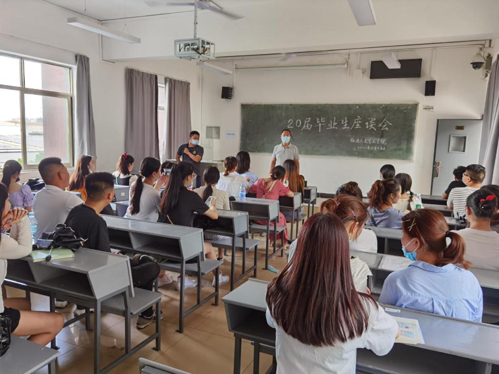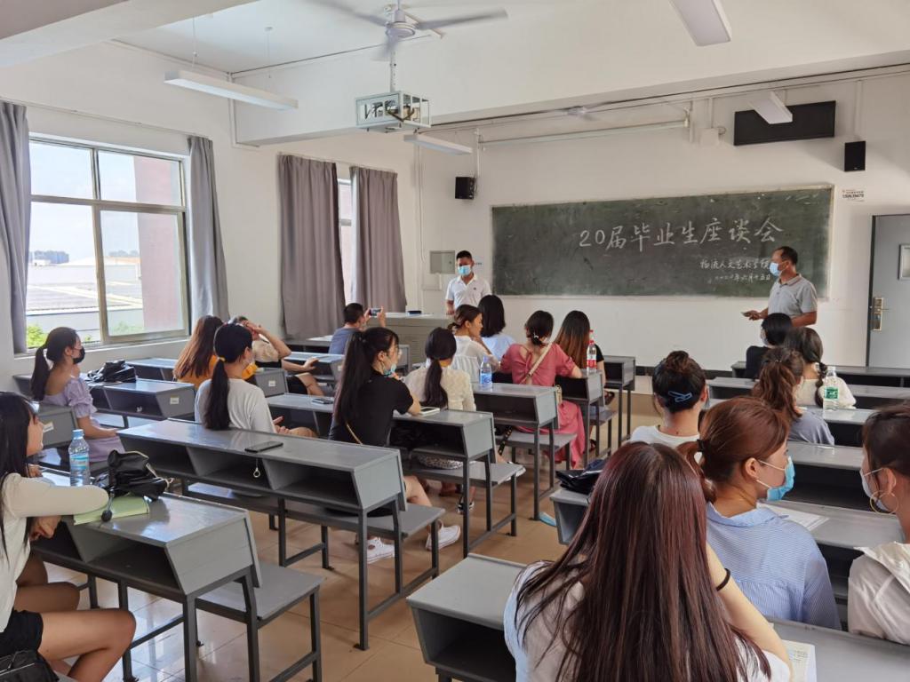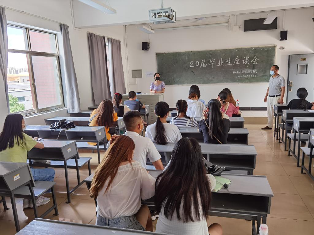 6月15日下午,物流人文艺术学院在教学楼107教室,举行2020届毕业生座谈会。参会的学生代表有学生干部、贫困建档立卡学生及普通学生共40余人。总支书记李烁、学生干事刘富建、辅导员黄晔、龚韵洁等出席谈会。会议由刘富建主持。