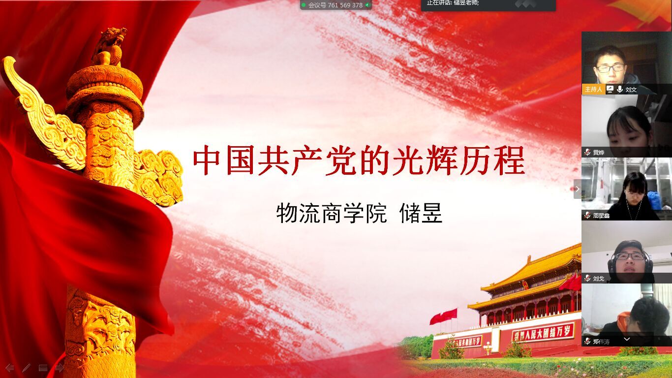 2020年4月12日晚上7点30分,物流商学院2020年第一期入党积极分子党校培训开班典礼暨培训第一讲通过腾讯会议举行。物流商学院党总支书记储昱老师;物流商学院院长、党总支副书记刘意文老师、党总支纪检委员王亚丽老师;党总支组织委员李丽老师以及师生联合支部全体党员老师参与此次会议。