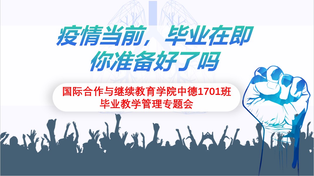 此次专题会是疫情期间毕业班的第二次线上主题会,主要围绕疫情期间的教学与管理,毕业季学生毕业设计、出国、专升本、参军入伍、就业、人生选择与规划等问题进行了讨论,给予毕业生及时有力的指导。学院教务干事李季花根据《国际合作学院防控疫情特殊时期网络课程教学督导工作方案》文件要求,通报了网络课程开设以来,教学督导发现的问题,要求同学们准时参加网络课程学习,做好考勤和学习。她还分享了德国的疫情状况以及同学们出国留学选拔考试成绩的进展,鼓励出国的同学坚定信心,学好语言和专业知识,为出国做好充分的准备。
