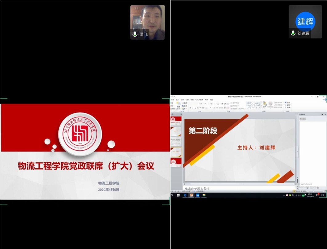 4月6日晚19:30,物流工程学院利用腾讯会议平台组织召开了党政联席(扩大)会议,学院党政班子、教研室主任、专业带头人、行管人员准时参会。