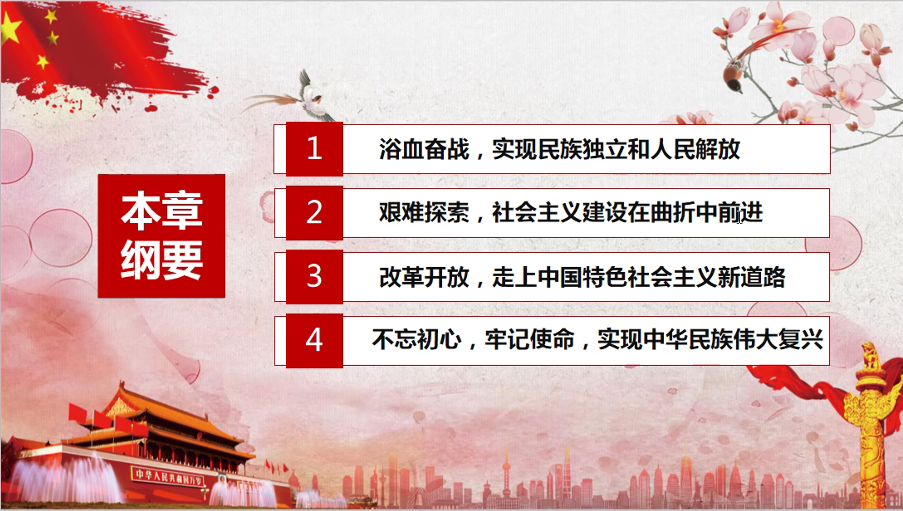 紧接着从浴血奋战,实现民族独立和解放;艰难探索,社会主义建设在曲折中前进;改革开放,走上中国特色社会主义新道路;不忘初心,牢记使命,实现中华民族伟大复兴四个方面讲述了中国共产党的光辉历程,中国共产党自诞生以来,领导着中国人民走过了波澜壮阔而又艰难曲折的奋斗历程,取得了举世瞩目的辉煌成就。