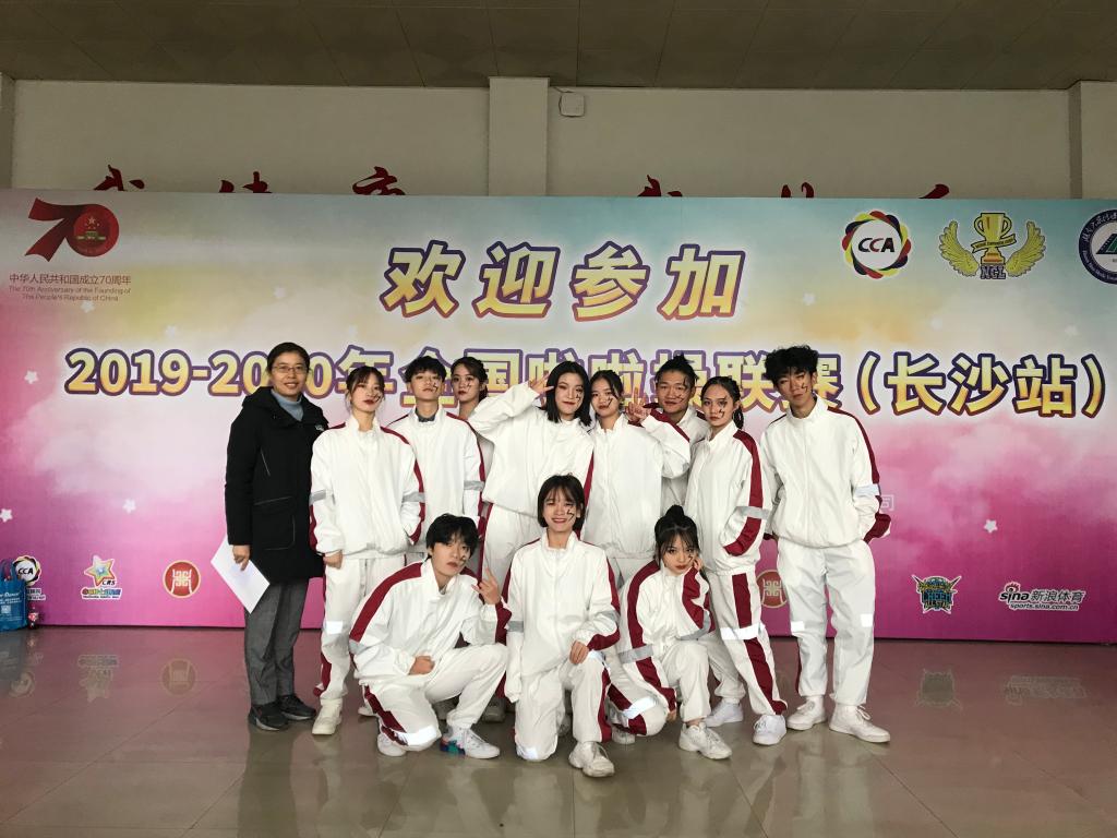 2019-2020年全国啦啦操联赛(长沙站)于12月1日下午在湖南大众传媒职业技术学院圆满结束,我校代表队在唐彪,李丽二位老师的指导下最终获得第一,第二的的好成绩。为了能在本次啦啦操比赛中取得较好的成绩,队员们不惧严寒,刻苦训练。正是有了前期刻苦的训练,无悔的付出,她们的精彩表演换来了赛场上的阵阵喝彩,带给人以完美的视听享受。