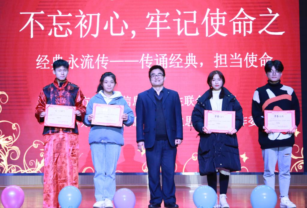 刘建辉书记为本次晚会进行点评,他高度赞誉本次活动是物信学院在全校推行的一次开创先河的重磅文化类晚会。节目形式多样,既传承了传统文化,又弘扬了革命文化,通过本次活动我们看到了一群积极向上,朝气蓬勃的爱国青年从活动中理解经典,传承经典,今后我们也将年年开展此类活动,让大家在传统文化中筑牢文化自信,树立家国情怀。