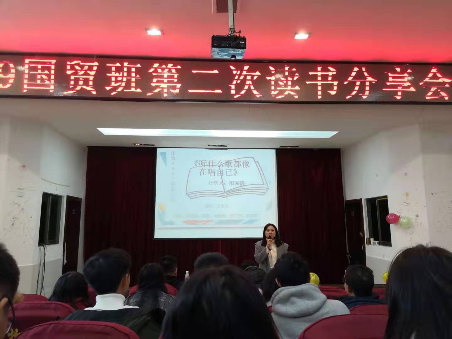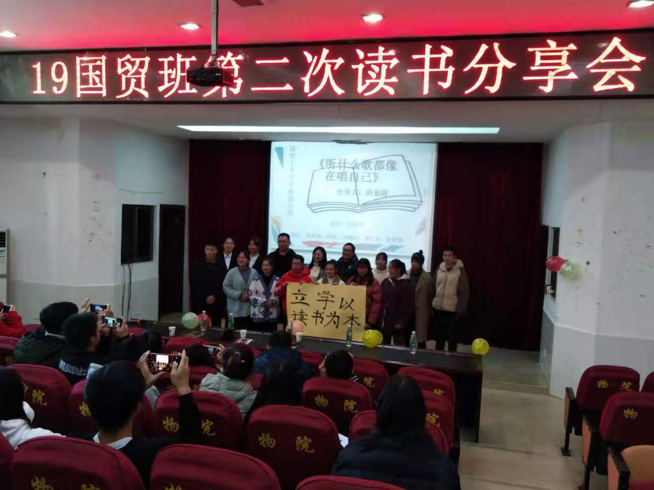 2019年12月3日,物流商学院2019级国贸班第二次读书分享会在图书馆学术报告厅举办。校团委马娜书记、物流商学院郑朴生老师、国贸班辅导员余三明老师,国贸班的全体同学参加分享会。