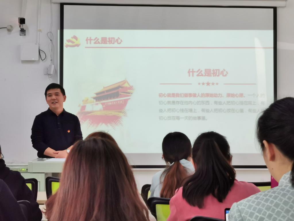 刘意文院长指出初心是做人做事的原始动力、原始心愿,只有不忘初心,才能找对人生的方向,才会坚定我们的追求,抵达自己的初衷。共产党人的初心和使命是为中国人民谋幸福,为中华民族谋复兴,我们教育工作者的初心和使命就是为党育人、为国育才,培养德智体美劳全面发展的社会主义事业建设者和接班人。