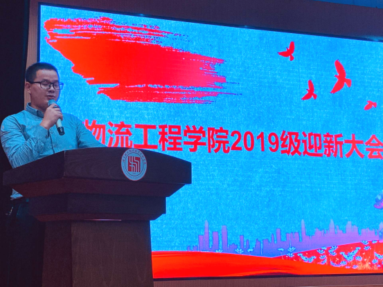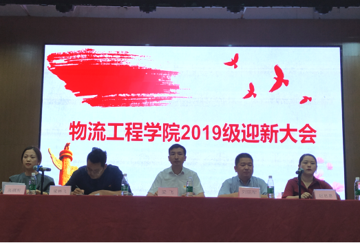 10月10日晚,物流工程学院在体艺馆召开2019级新生迎新大会,物工学院院长梁飞、副院长刘丽军、学生干事梁林飞、教务干事高琪昕、团总支书记赵思惠、辅导员老师马菊、杨新凤、杨彪、夏江雪出席大会,学院全体19级新生参会。会议由赵思惠主持。