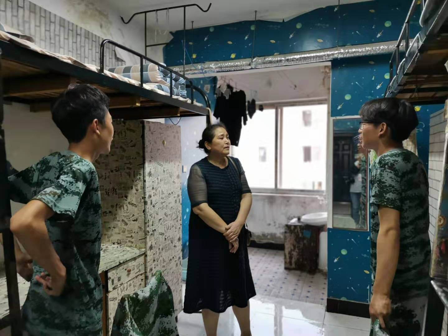 段院长、袁院长也逐一来到每一间寝室,在嘘寒问暖的同时,也勉励同学们要尽快融入班级和学校,给每一个学生都送上了生活愉快、健康平安、学有所成的真诚祝愿。