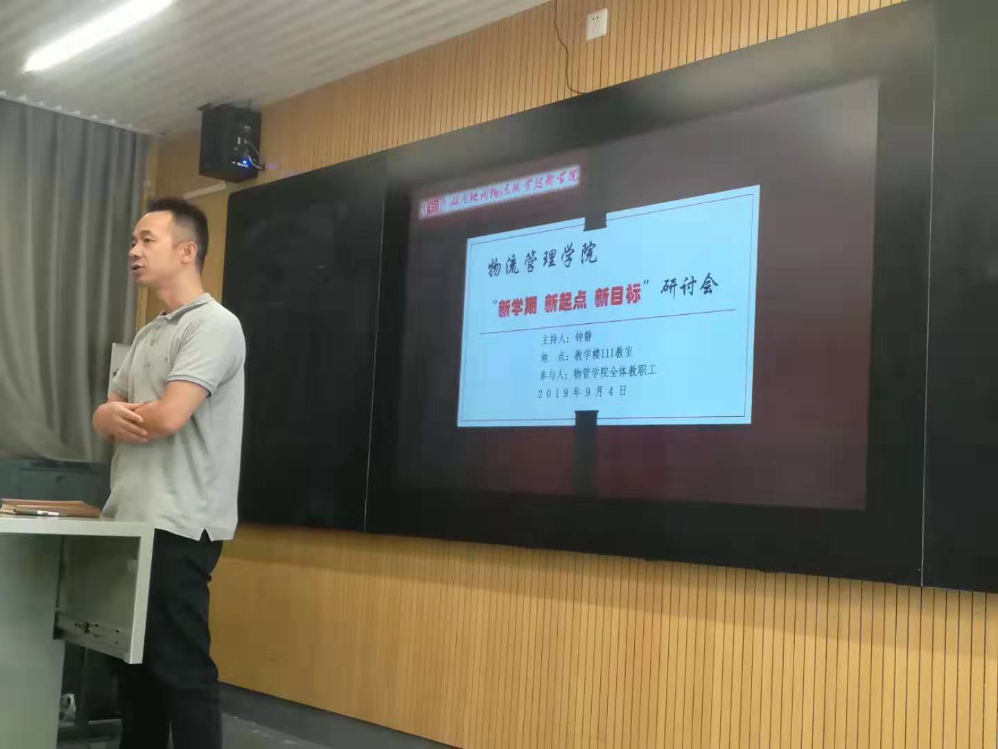 物流管理学院于2019年9月4日在教学楼111教室召开为期一天的“新学期 新起点 新目标”研讨会,学院全体教职工参加,会议由副院长袁世军主持。