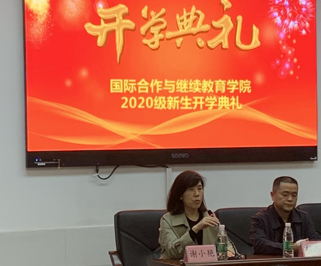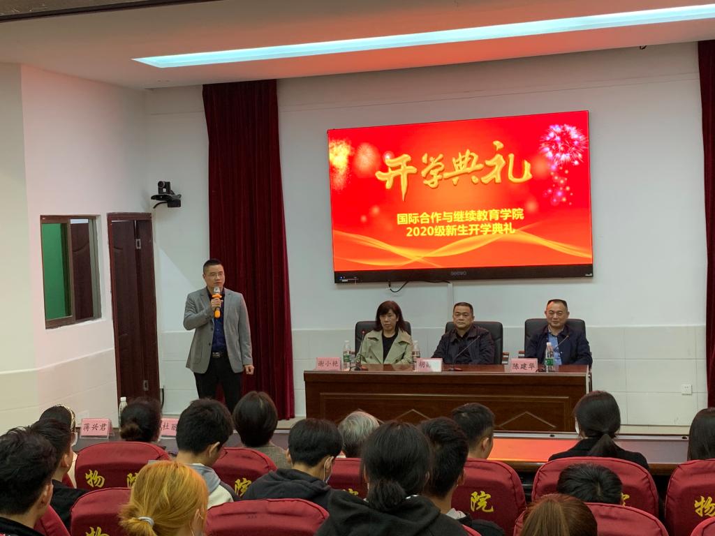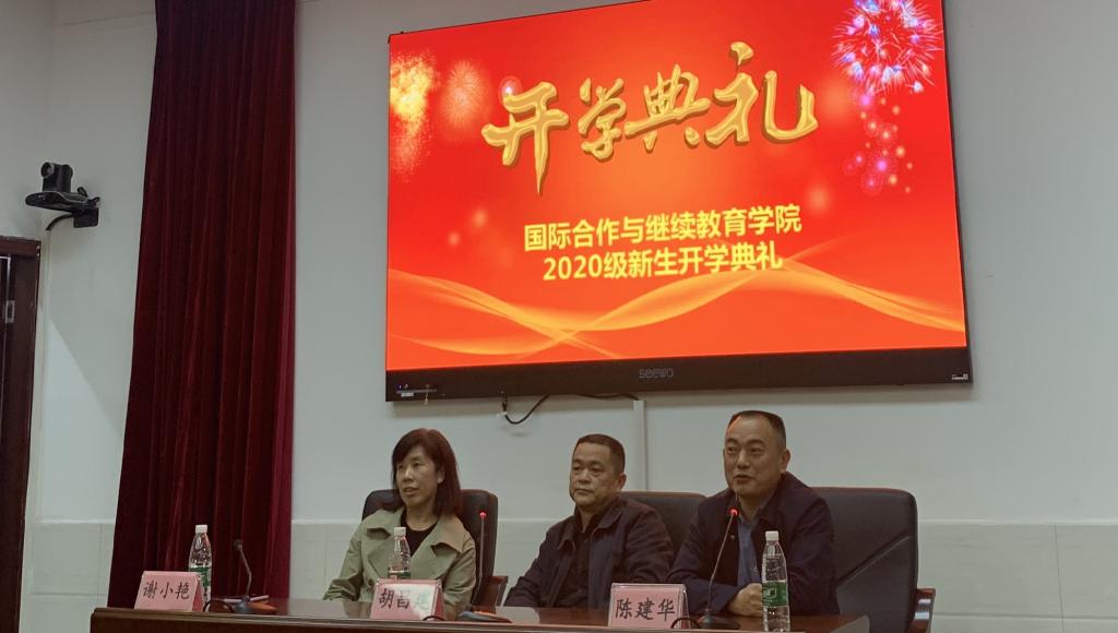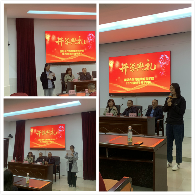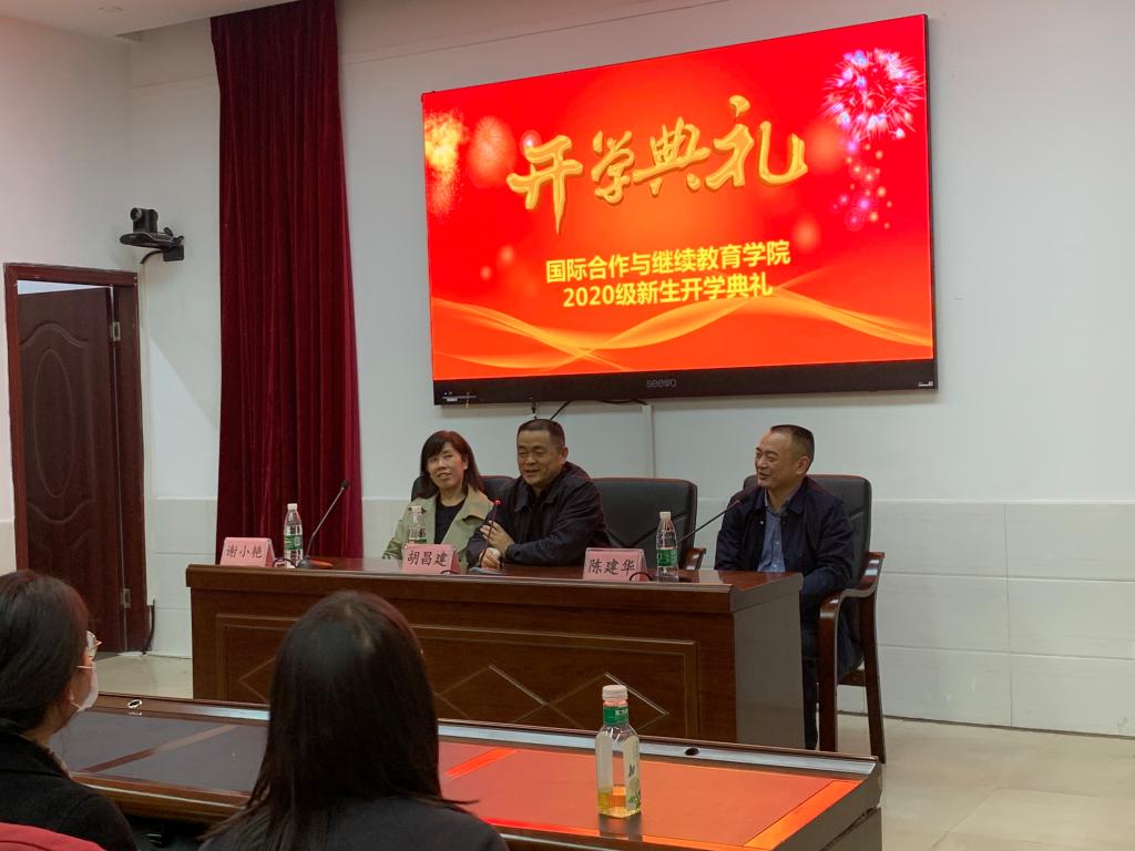 11月2日晚18:30,国际合作与继续教育学院在图书馆学术报告厅举行了2020级新生开学典礼。学校党委委员、纪委书记胡昌建,学校党委委员、副校长陈建华出席典礼,专业带头人、质量诊改与督导办副主任杜丽茶,新生班级辅导员,国际合作与继续教育学院全体教职员工及2020级全体新生参加了典礼。