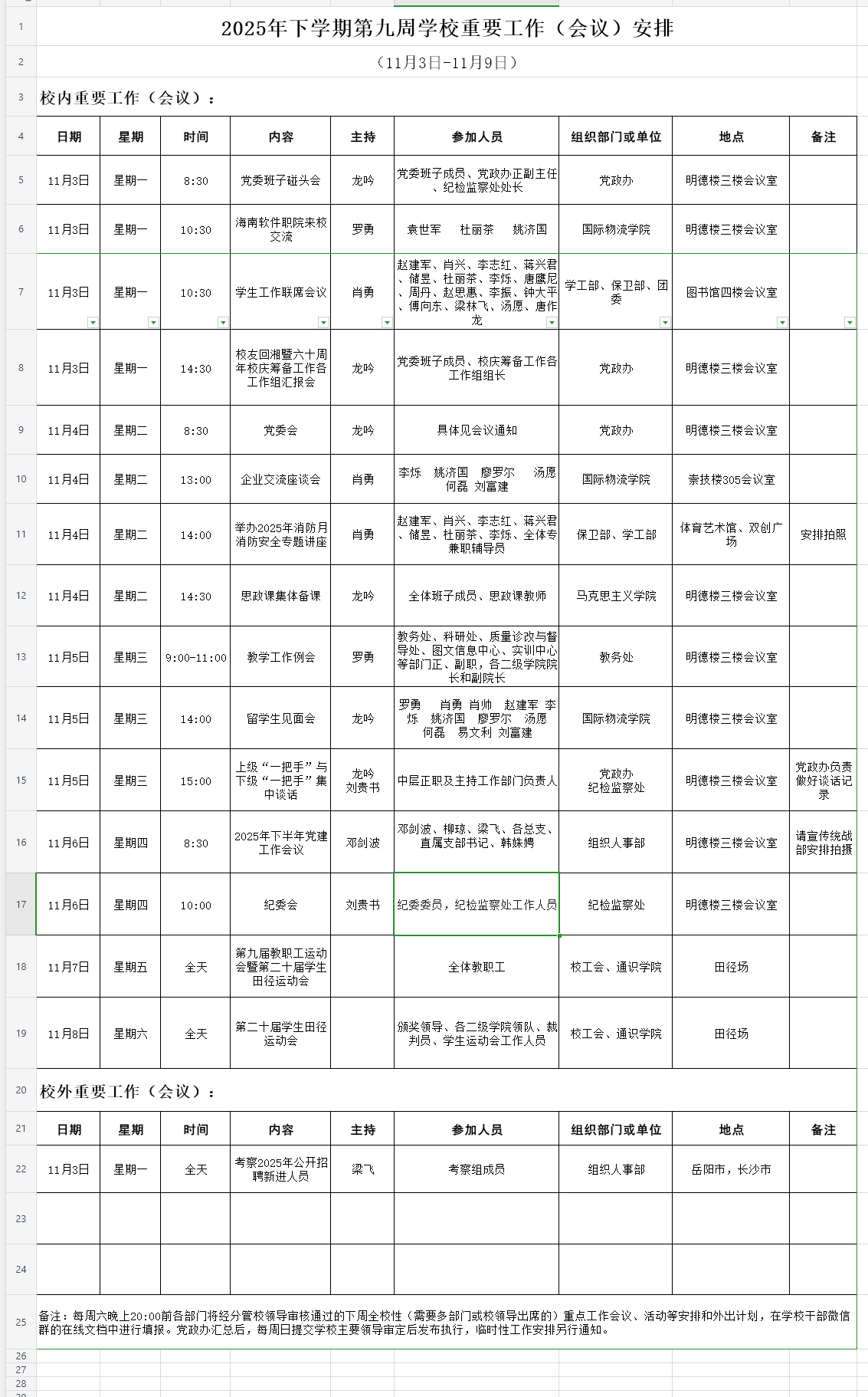 2025年下学期第九周学校重要工作(会议)安排